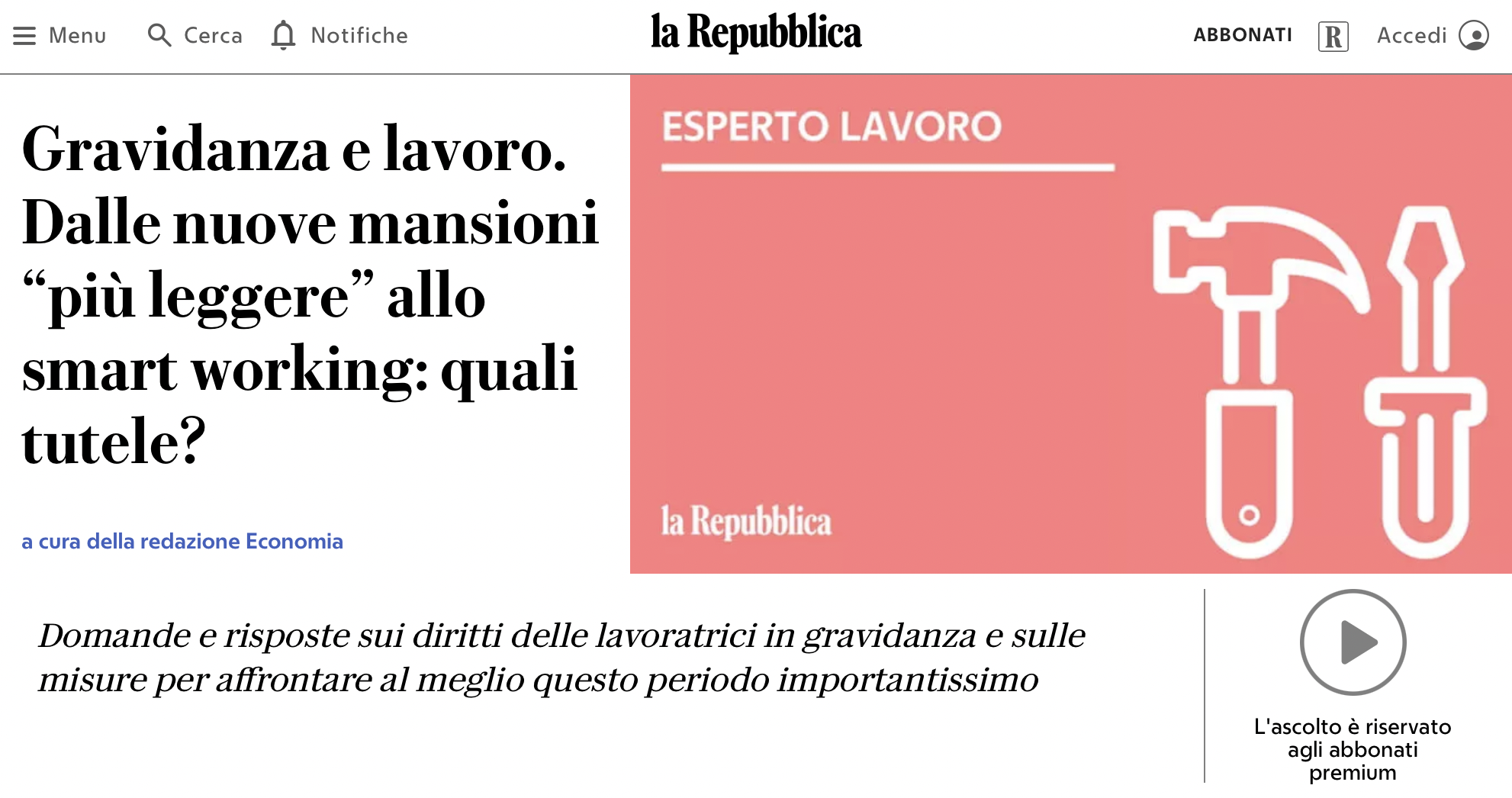 Condividiamo l’approfondimento dell’Avv. Orazio Marano, pubblicato su La Repubblica il 28 Luglio 2025, che analizza quali tutele siano previste per una lavoratrice in gravidanza. In un momento di particolare importanza nella propria vita, il legislatore ha introdotto una serie di tutele finalizzate a garantire la salute della madre e del nascituro, senza compromettere – nei limiti in cui ciò sia possibile – la prosecuzione dell’attività lavorativa da parte dell’interessata. Vediamo, nello specifico, quali sono dette tutele e come è possibile metterle in atto.
